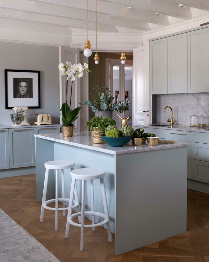 Decoration Plantes Vertes Et Suspensios Pour Cuisine Ouvrte Avec Tablette. Faites entrer la nature dans vos bureaux, pour bien accueillir vos visiteurs et faciliter la concentrati. Photo de lana red studio via pinterest >> a lire aussi >> 3 diy pour plantes vertes.
