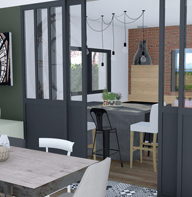 Car la verrière apporte beaucoup de luminosité. Hyper tendance, la verrière atelier permet d'isoler la cuisine du salon tout en laissant les volumes ouverts. La verrière investit la cuisine, à raison ! Leur souhait est exaucé avec cette verrière ouverte sur le salon qui délimite la cuisine tout en créant un prolongement à la pièce à vivre.